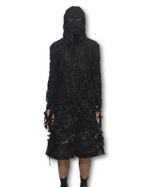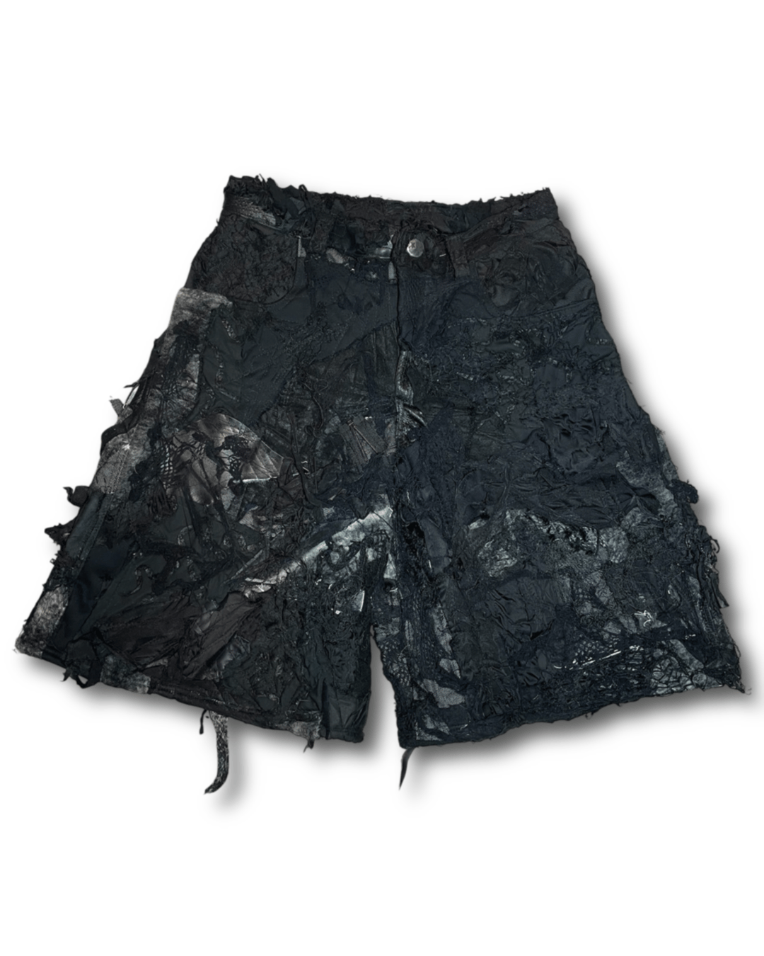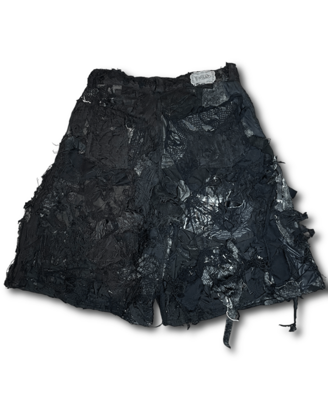 Popeline de Coton Surpiquées de chutes de tissus noirs pour un effet Ghillie.